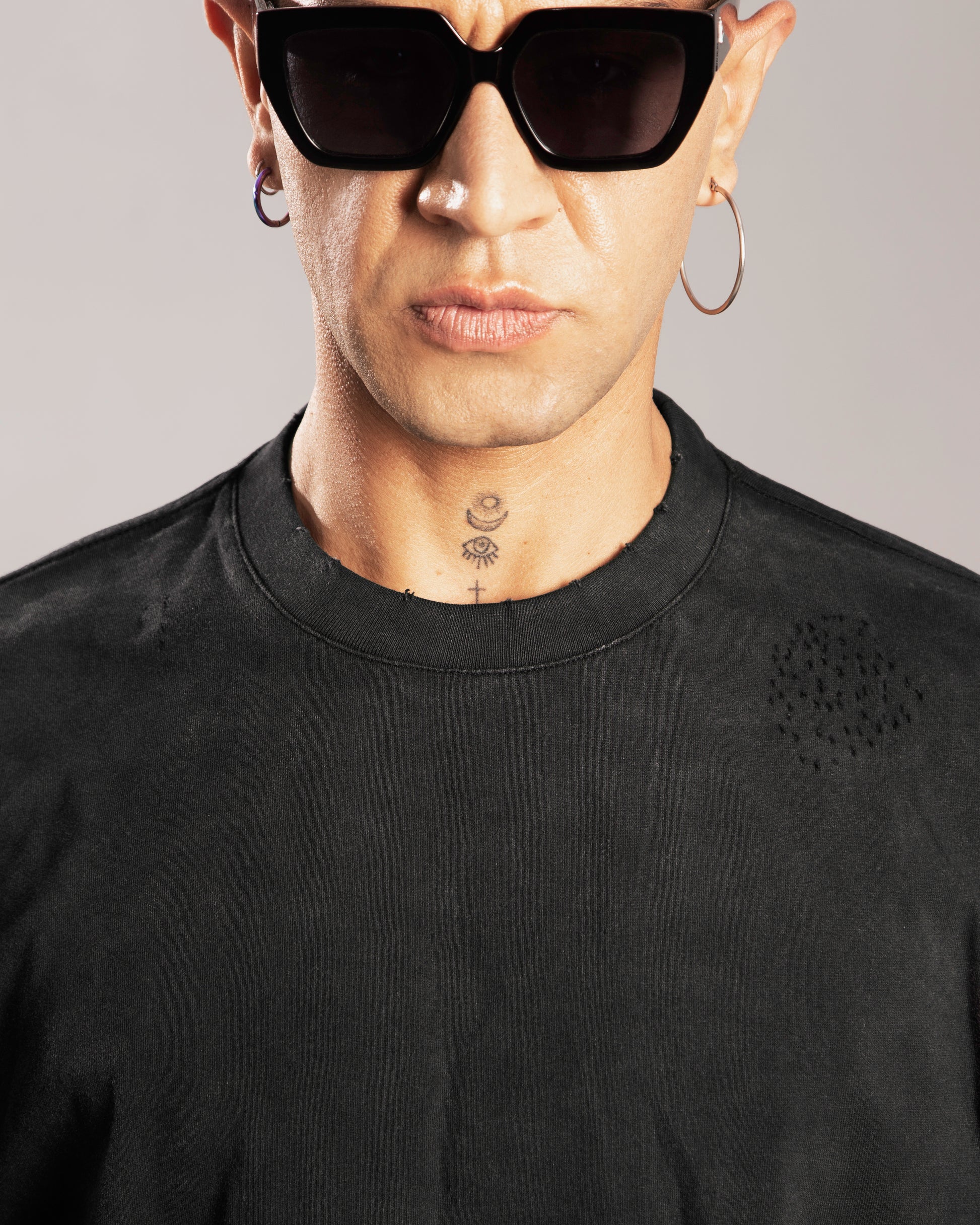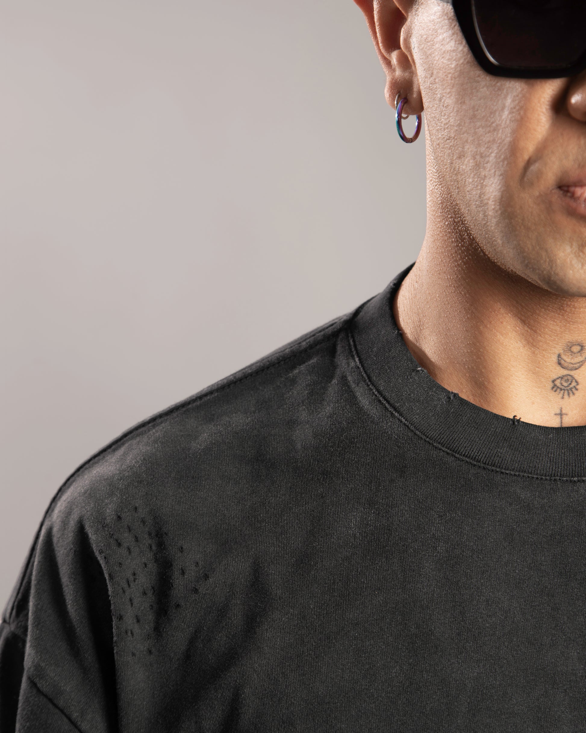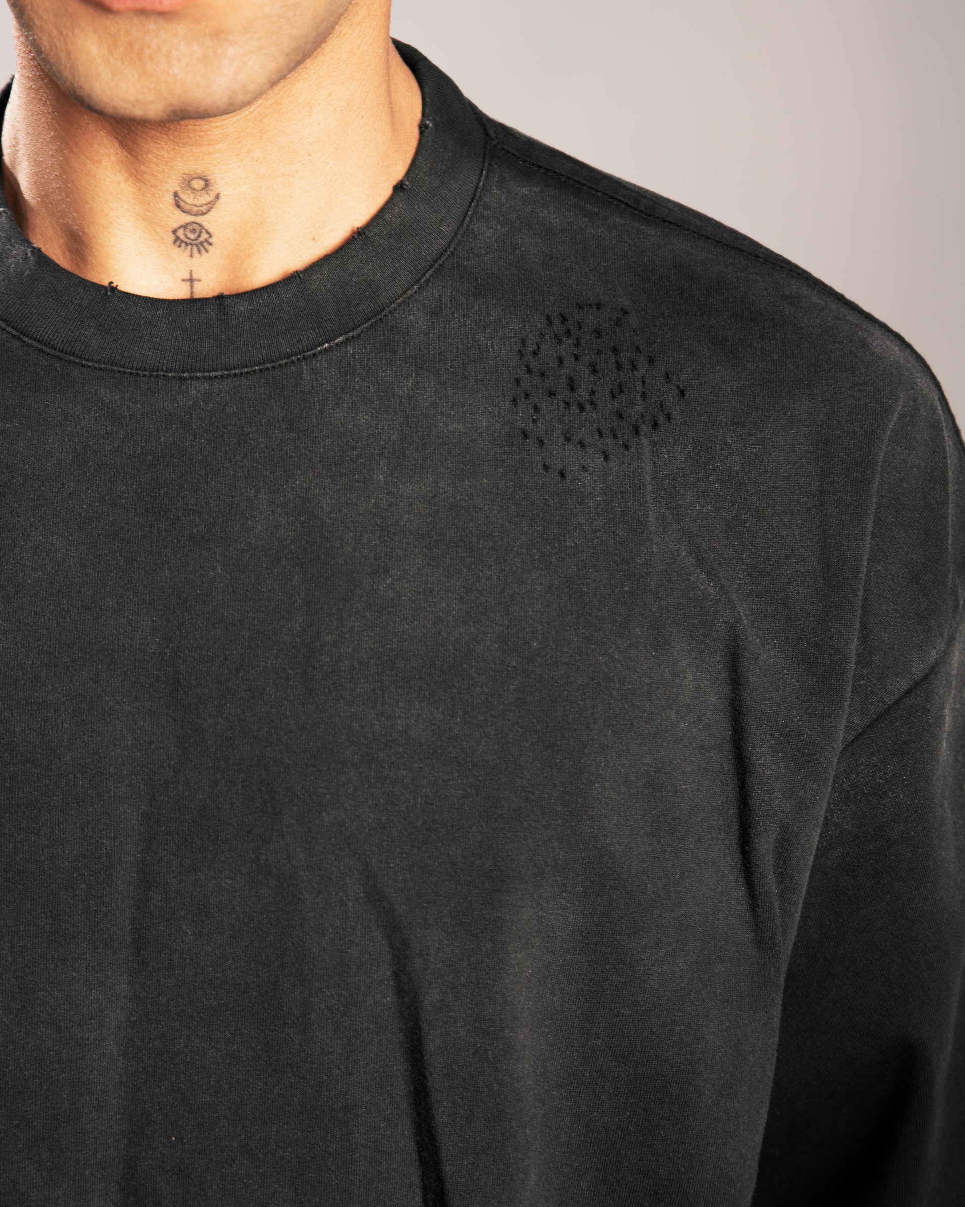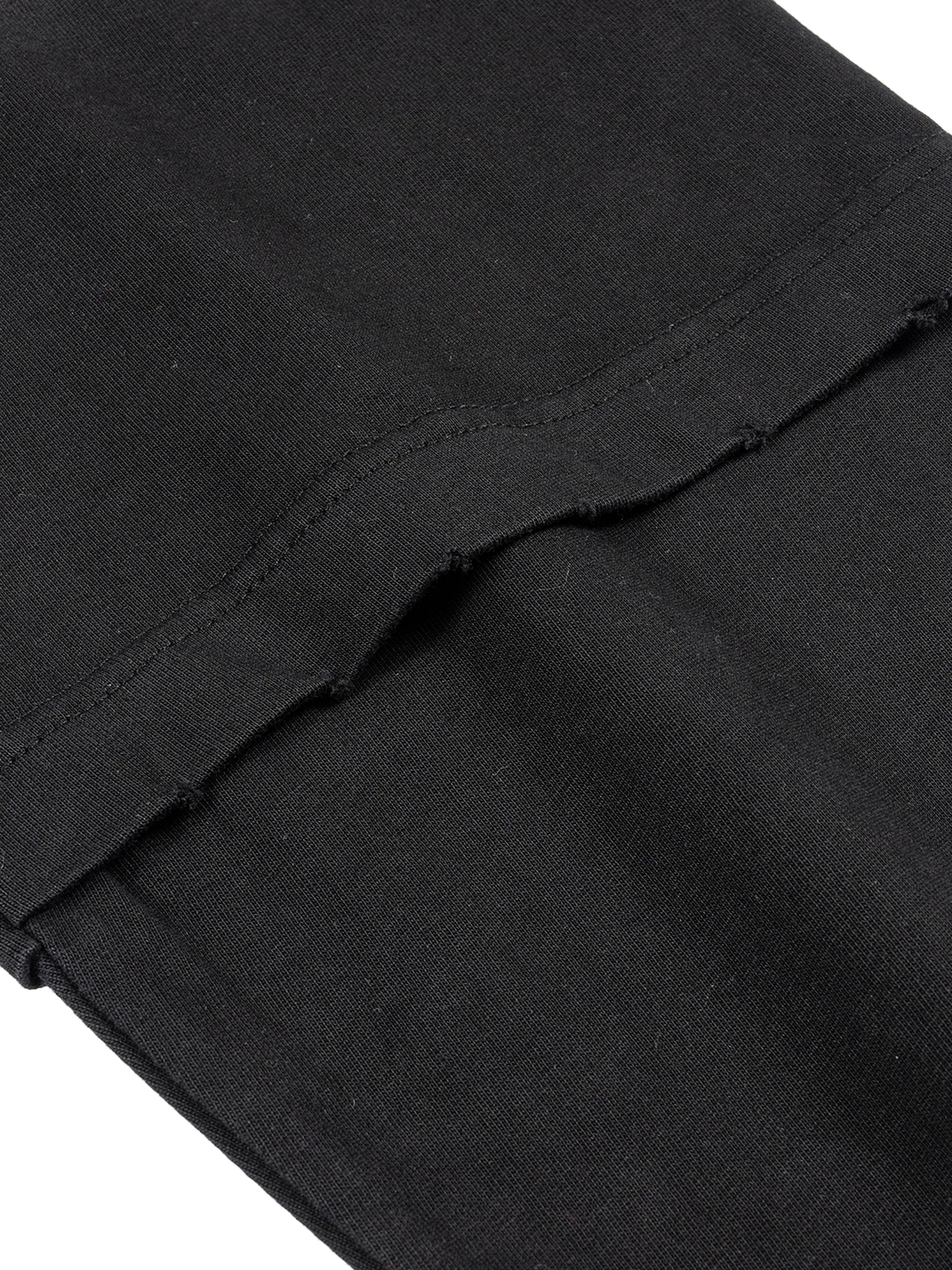 - Showcases a hand-frayed hem and sleeves